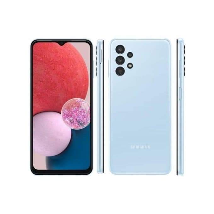 Samsung Galaxy A13 – 6.6″ (4GB RAM, 128GB ROM) Android 12 (50/5/2/2)MP + 8MP Selfie – 5000mAh – Dual Sim – 4G LTE – Face ID – Fingerprint – Light Blue